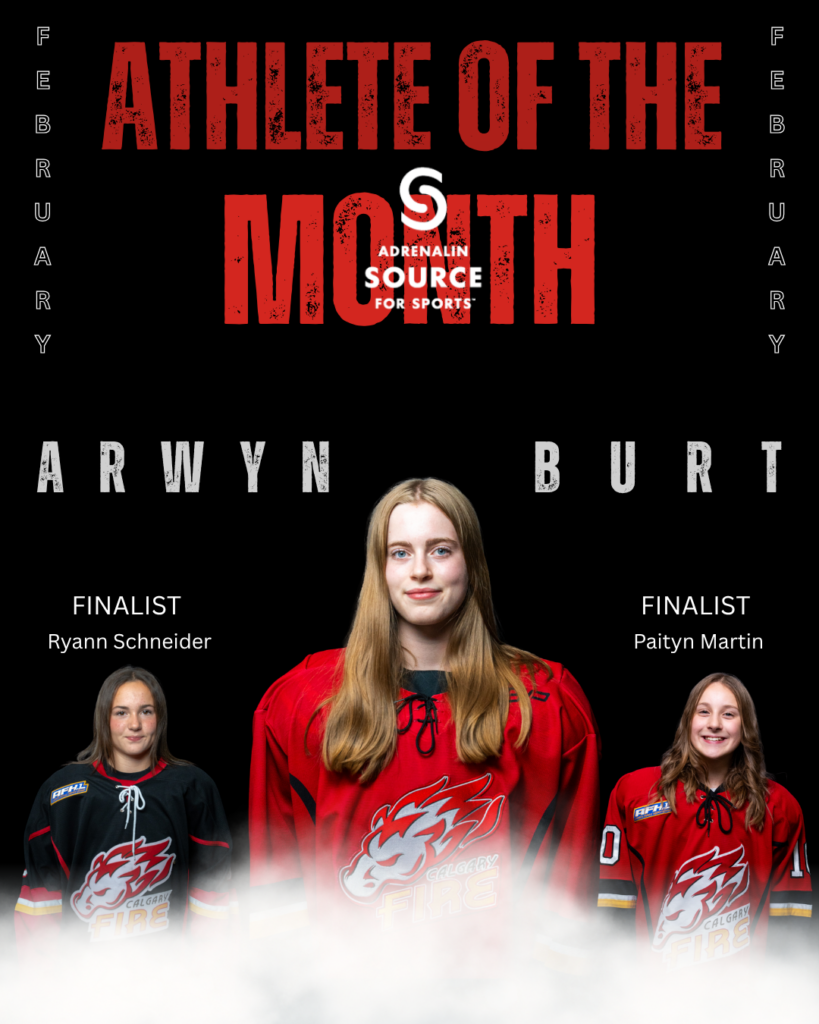 Congratulations to Arwyn Burt of U18AA Red on earning the Adrenalin Athlete of the month award for the month of February. This month’s theme was “fuel the future”. Burt shows up every day ready to work and never takes a shift off. Her love for the game fuels her work ethic and hunger to become a better player. Her coach says she plays with an edge and does everything she can to help her team win. Burt is also known as a teammate who is constantly cheering her teammates on and lifting others up when they are down.