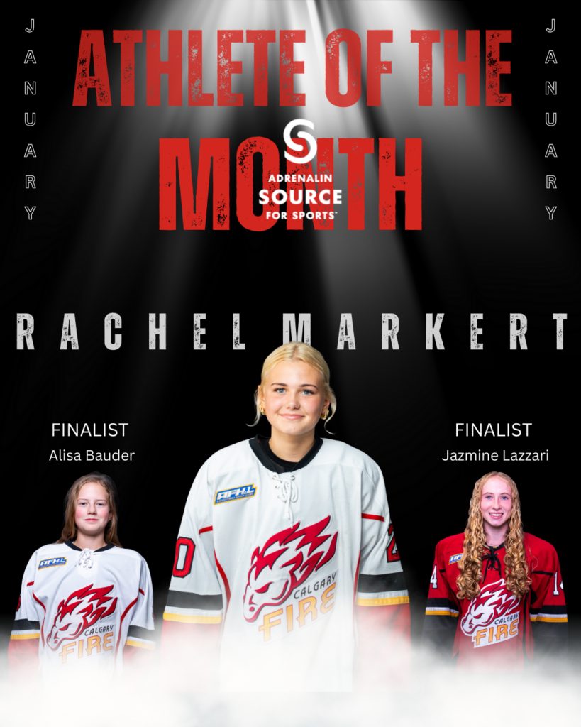 Congratulations to Rachel Markert of U15 AA White on earning the Adrenalin Athlete of the month award for the month of January. This month’s theme was “rise to the moment”. This theme is no stranger to Rachel. She is described as a player who is able to navigate any situation, whether it’s pushing for a goal, holding a lead, or killing off a penalty. She has lit the lamp eight times in January, including a OT winner in a nail-biting league game. Markert can be put on the ice in any high-pressure situation, with trust that she will rise to the moment.